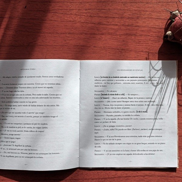 Comedia de muñecos en un acto para niños, cuenta la historia de tres alegres y desfachatados juguetes —una muñeca, un payaso y un soldado—, que cobran vida mientras los humanos no están. Ellos quieren hacer una revolución y también jugar unas bromas. Fue publicada por primera vez en el diario La Nación, el 13 de noviembre de 1932.